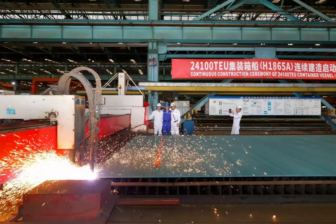 9月22日,滬東中華為地中海航運(yùn)公司建造的24100TEU集裝箱項(xiàng)目2號船連續(xù)建造啟動儀式。