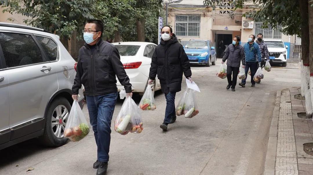 元旦前,東儀科工100余位黨員、職工火速集結(jié)組成志愿團隊,有序?qū)?6輛汽車運來的物資進行卸載、分裝,忙而不亂,將一袋袋蔬菜分樓棟、分單元送到居家隔離的住戶手中,確保3200余戶居民在新的一年到來之前收到政府的愛心物資,滿足基本生活需求。