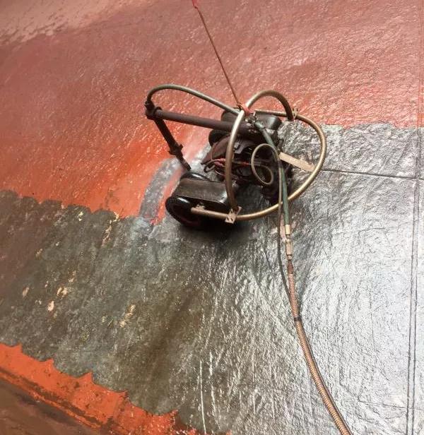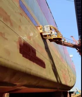 2020年,公司在水霧噴砂基礎(chǔ)上引進(jìn)了8套超高壓水除銹設(shè)備,并通過(guò)引進(jìn)技術(shù)自主研發(fā)爬壁機(jī)器人,進(jìn)一步壓減修船除銹粉塵的產(chǎn)生量,從根源上解決了船舶除銹帶來(lái)的揚(yáng)塵問(wèn)題。