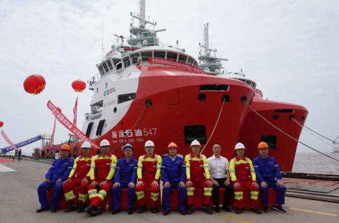 此次交付的“海洋石油542”和“海洋石油547”船是專門為我國(guó)海洋石油開(kāi)發(fā)提供支持服務(wù)的船舶,可為海上油氣開(kāi)發(fā)提供值班守護(hù)、貨物運(yùn)輸、救助以及對(duì)外消防等服務(wù)。該批船舶完全實(shí)現(xiàn)國(guó)內(nèi)設(shè)計(jì)、國(guó)內(nèi)建造,智能船舶系統(tǒng)、核心LNG儲(chǔ)罐及供氣系統(tǒng)、加注系統(tǒng)、主機(jī)、舵槳裝置均實(shí)現(xiàn)自主知識(shí)產(chǎn)權(quán)國(guó)產(chǎn)化,標(biāo)志著我國(guó)綠色化、智能化海工船設(shè)計(jì)、建造能力達(dá)到國(guó)際一流水平。