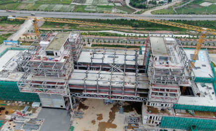101#總部研發(fā)大樓是湛江灣實(shí)驗(yàn)室一期項(xiàng)目的核心工程,其上部重達(dá)1.8萬噸的主體結(jié)構(gòu)由53.4米跨度的轉(zhuǎn)換桁架承托。該轉(zhuǎn)換桁架是世界現(xiàn)有的第二大跨度轉(zhuǎn)換結(jié)構(gòu),同時(shí)與轉(zhuǎn)換桁架兩端相連的雙層鋼板剪力墻核心筒也是實(shí)現(xiàn)該建筑結(jié)構(gòu)設(shè)計(jì)的關(guān)鍵部位。