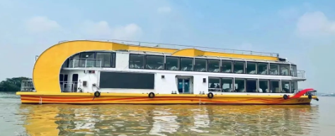 “廣游19”配置3015kWh純鋰電池驅(qū)動(dòng),Z形全回轉(zhuǎn)舵槳推進(jìn),經(jīng)濟(jì)航速下可滿足7小時(shí)續(xù)航要求。船體上建采用大面積玻璃幕墻,具有開(kāi)闊的觀光視野,可360度觀賞珠江日景夜景,可提供江景游覽、娛樂(lè)餐飲、會(huì)議招待、婚禮、音樂(lè)舞會(huì)、年會(huì)等綜合服務(wù)。