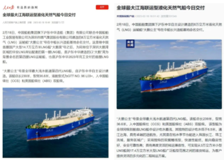 2月18日,中國(guó)船舶集團(tuán)旗下滬東中華聯(lián)合中船貿(mào)易建造的8萬(wàn)立方米液化天然氣(LNG)運(yùn)輸船“大鵬公主”號(hào)在中船長(zhǎng)興造船基地命名交付。這是繼中國(guó)首艘國(guó)產(chǎn)大型14.7萬(wàn)立方米LNG船“大鵬昊”號(hào)之后,為同樣位于深圳大鵬灣區(qū)域的華安LNG岸站配套的第一艘LNG船,是滬東中華建造的以“大鵬”灣為背景命名的第四艘LNG運(yùn)輸船,也是滬東中華2023年完工交付的首艘LNG船,全面開(kāi)啟LNG船產(chǎn)能倍增戰(zhàn)略實(shí)施新征程。