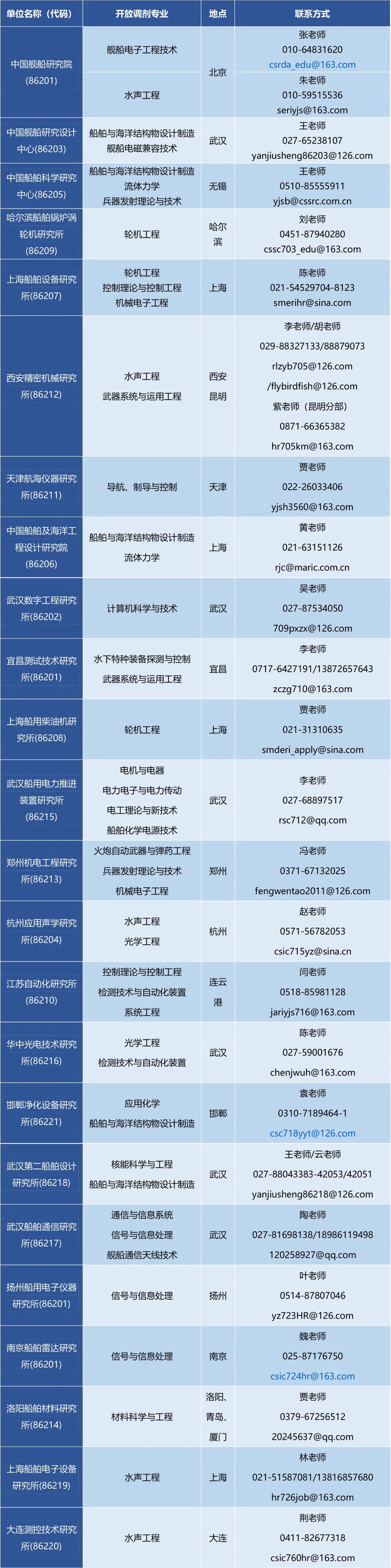 請考生將簡歷、本科成績單、初試成績單等材料打包(文件名以“姓名+初試總分+本科院校+本科專業(yè)+申請調(diào)劑培養(yǎng)單位+申請調(diào)劑專業(yè)”命名,如張三+345+哈爾濱工程大學(xué)+船舶與海洋結(jié)構(gòu)物設(shè)計(jì)制造+中國艦船研究設(shè)計(jì)中心+船舶與海洋工程)投遞調(diào)劑單位聯(lián)系人郵箱,由培養(yǎng)單位對滿足調(diào)劑條件考生擇優(yōu)篩選后,通知考生參加復(fù)試。