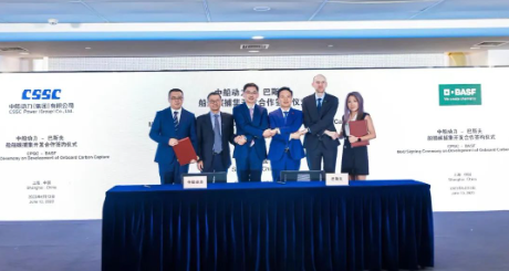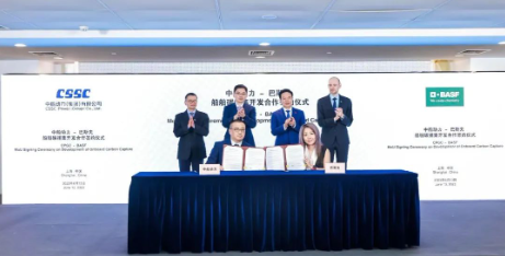 6月13日,中國船舶集團(tuán)旗下中船動(dòng)力(集團(tuán))有限公司與巴斯夫歐洲公司,在2023年上海國際碳中和技術(shù)、產(chǎn)品與成果博覽會(huì)上,正式簽署關(guān)于共同開發(fā)船舶碳捕集系統(tǒng)戰(zhàn)略合作諒解備忘錄。此次合作將發(fā)揮中船動(dòng)力在船舶動(dòng)力研發(fā)、制造與服務(wù)領(lǐng)域的領(lǐng)先優(yōu)勢,以及巴斯夫前沿專業(yè)的氣體處理技術(shù),加速開展船舶碳捕集的商業(yè)化應(yīng)用,攜手助力全球航運(yùn)業(yè)綠色發(fā)展。