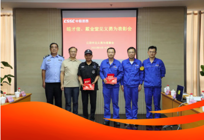 9月19日,江陰市見義勇為基金會專程來到中國船舶集團(tuán)旗下中船澄西,對生產(chǎn)管理部眭才俊進(jìn)行表彰。