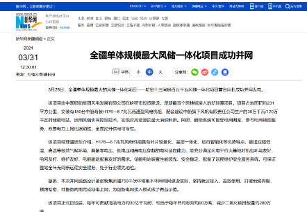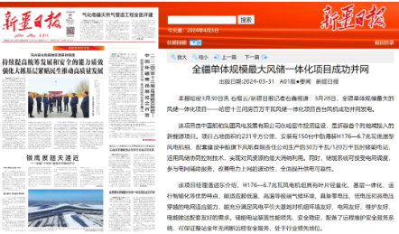 近日,中國(guó)船舶集團(tuán)旗下中船科技子公司中船風(fēng)電和哈密?chē)?guó)投聯(lián)合開(kāi)發(fā)的新疆哈密百萬(wàn)千瓦風(fēng)儲(chǔ)一體化項(xiàng)目首臺(tái)風(fēng)機(jī)成功并網(wǎng)發(fā)電,央視《新聞聯(lián)播》、新華網(wǎng)和《新疆日?qǐng)?bào)》等紛紛關(guān)注報(bào)道。
