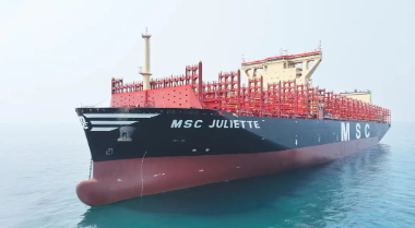 “MSC 朱麗葉”號安裝脫硫塔并預(yù)留液化天然氣(LNG)動力功能,采用全新理念的環(huán)保減碳減阻設(shè)計(jì),滿足最新的環(huán)保排放標(biāo)準(zhǔn),是一款綠色環(huán)保、高效節(jié)能的大型集裝箱船。