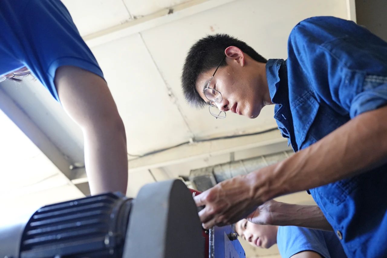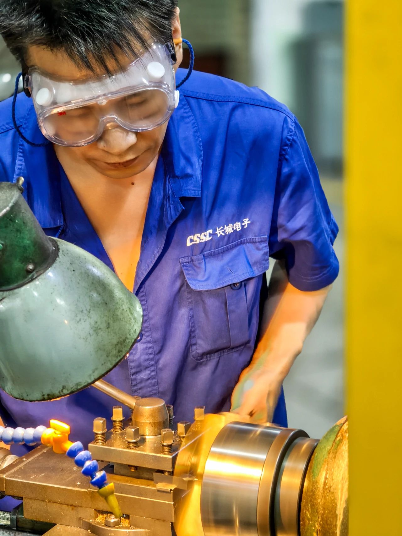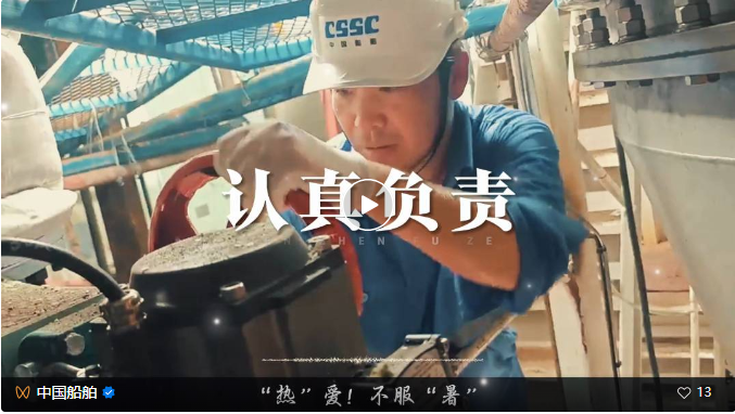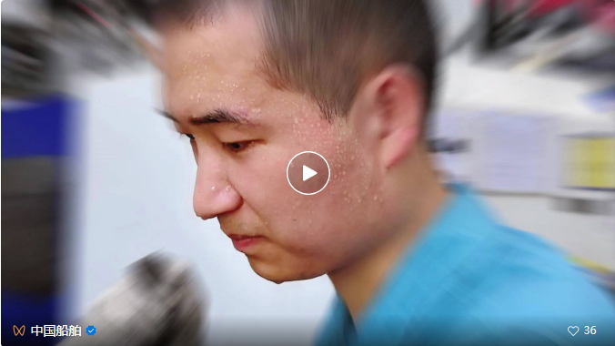 中船發(fā)動機——調試人員頂著高溫在認真安裝傳感器,汗水濕透了衣裳。