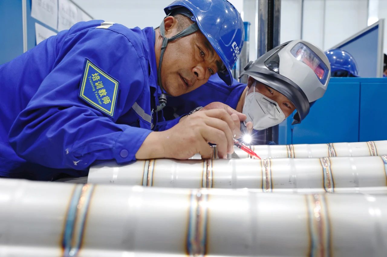 大連造船——LNG綜合培訓中心,施工人員正在進行貨物圍護系統(tǒng)粘連作業(yè)和焊接作業(yè)培訓。