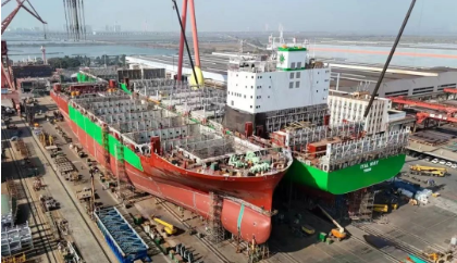 黃埔文沖切實增強自主開發(fā)能力,堅持聚焦主建船型,持續(xù)推廣自主開發(fā)的“鴻鵠”集裝箱船和“海鯨”散貨船系列,成功打造1900TEU集裝箱船、3000TEU集裝箱船、2400TEU甲醇雙燃料集裝箱船和85000噸散貨船等明星船型,形成品牌迭代升級和譜系化;緊抓船舶行業(yè)綠色新能源的機遇,黃埔文沖以市場需求為導(dǎo)向,承接了多艘以甲醇、氨燃料等綠色能源為動力的集裝箱船和散貨船訂單。