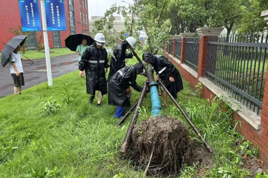 9月16日10點左右,七一一所莘莊、復興島、浦江鎮(zhèn)園區(qū)開啟“狂風暴雨”模式。年逾60的大松樹未能抵擋住風雨肆虐,倒下了,冷卻塔、窗戶、室外暫存設備均受到了不同程度的損壞。各園區(qū)防汛防臺帶班領導,在連續(xù)值班20多小時的情況下,迅速集結(jié)值班人員開展現(xiàn)場損失確認及修復工作,用心守護了園區(qū)的安全。