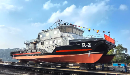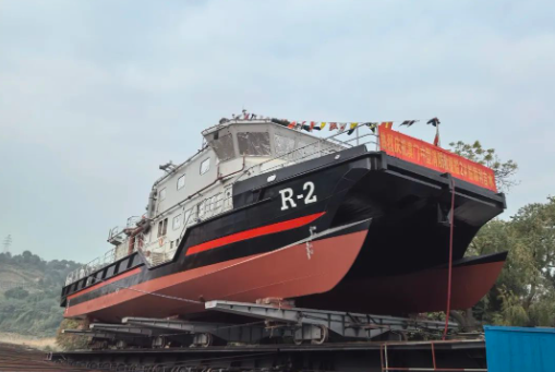 12月6日,中國(guó)船舶集團(tuán)旗下廣州公司承接七〇一所下屬武漢船舶設(shè)計(jì)研究院設(shè)計(jì)、桂江造船建造的澳門海關(guān)中型消防救援船“R-2”號(hào)下水