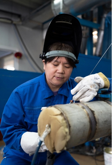 至今,朱瑞霞已經(jīng)參與了“遠望”系列船、“雪龍2”號、南昌艦等國家重點項目的焊接工作。她說,當時有人高度評價稱:“你焊的管子可以免檢?!钡珘毫σ搽S之而來,“我當時就想,船一出海就是半年,我的焊接要是出問題,就是人命關(guān)天?!闭且驗檫@種“軸”,朱瑞霞先后攻克了鎳銅管焊接變形、HDR不銹鋼焊接、鈦合金焊接等一系列高難度問題。她主導研發(fā)了十余項焊接專利技術(shù),攻克了薄壁管道焊接難題,還創(chuàng)新研制了特有的工裝,獲得外國專家的認可和推廣應(yīng)用。