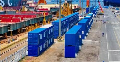 大船天津連續(xù)三年共投入800余萬元,分批購置300個集裝箱式休息室,內(nèi)部安裝空調(diào),為戶外作業(yè)員工搭建“夏能納涼、冬可取暖”的舒適休息場所;在“中船幸福驛站”里,50余臺制冰機在各生產(chǎn)一線不停運轉(zhuǎn),為員工帶來絲絲涼意;食堂在每日午餐后迅速變身“臨時清涼驛站”,公共區(qū)域搭配按需取用的單人涼席,讓員工在餐后盡享片刻清涼;在露天作業(yè)現(xiàn)場配備成片的遮陽棚和冷風機,切實為員工撐起高溫下的“防護傘”。