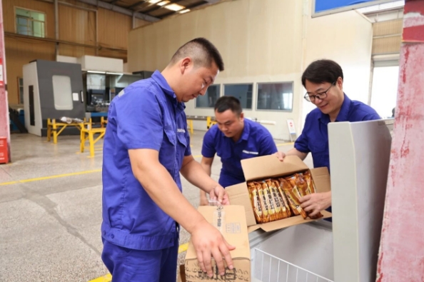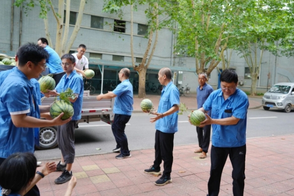 防暑降溫的藥品,冰涼解渴的飲品,又大又甜的西瓜,干凈涼爽的午休場所……中船集團(tuán)旗下中南裝備、中船陜柴、中船綠洲、中船河柴多措并舉為一線員工撐起關(guān)愛“遮陽傘”。