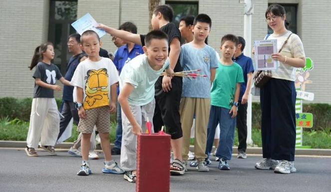 在講解員引導(dǎo)下,家屬們先后走進(jìn)七二五所所部科技展廳與第六研究室,系統(tǒng)了解研究所六十余載發(fā)展歷程、研究領(lǐng)域、前沿技術(shù)攻關(guān)。從國家科技進(jìn)步獎(jiǎng)獲獎(jiǎng)項(xiàng)目到“大國重器”關(guān)鍵材料突破,家屬們深刻感受到“艱苦創(chuàng)業(yè)、勇攀高峰”的奮斗者文化傳承。在親子活動(dòng)區(qū),“趣味投壺”“瘋狂九宮格射門”“百步穿楊”“急速投籃”等4項(xiàng)趣味游戲,瞬間點(diǎn)燃了職工與家屬們的參與熱情,大家紛紛組隊(duì),積極投入到游戲中,通過趣味互動(dòng),進(jìn)一步加深彼此間的理解與默契,情感也在歡聲笑語中得到了升華。