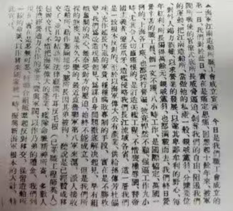 《海軍江南造船所職工會(huì)成立宣言》