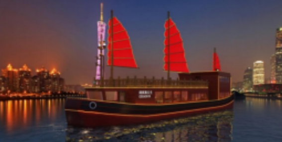 ????160客位純電動(dòng)客船“闊闊真公主號(hào)”總長(zhǎng)36米,型寬8米,型深3米。該船是仿七百多年前元朝闊闊真公主遠(yuǎn)嫁波斯時(shí)乘坐的古船建造而成,有“福船送?!钡脑⒁狻=ㄔ旌髮⑿凶哂谥榻?,夜游展示亞洲文化交流的傳奇。