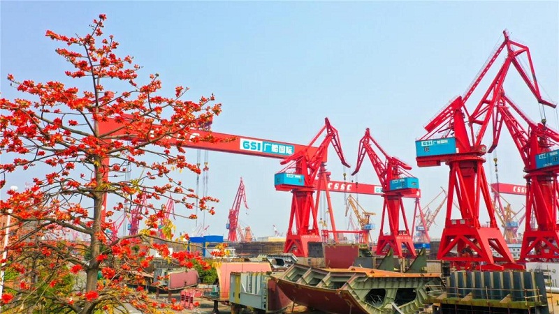 船舶泊位滿滿當當,修、造船舶狀態(tài)良好