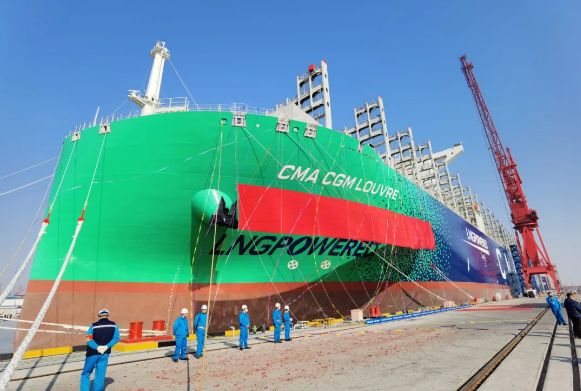 2017年9月,中國船舶集團(tuán)與法國達(dá)飛集團(tuán)簽署九艘23000TEU超大型集裝箱船建造合同,截至目前,已交付八艘。 該系列船均由中國船舶集團(tuán)七〇八所自主研發(fā)設(shè)計(jì),是首次引入液化天然氣雙燃料系統(tǒng)的超大型集裝箱船。因?yàn)樗执笥汁h(huán)保,是名副其實(shí)的海上“巨無霸”,我們都叫它“綠巨人”!