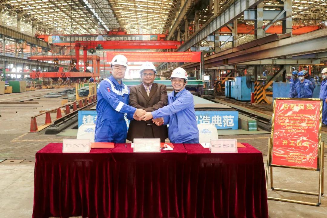 2月18日,廣船國(guó)際為挪威SFL公司建造的7000車雙燃料汽車運(yùn)輸船(PCTC)首制船舉行開工儀式,這是華南地區(qū)建造的首艘雙燃料汽車運(yùn)輸船,也是廣船國(guó)際春節(jié)后開工建造的第一艘船。