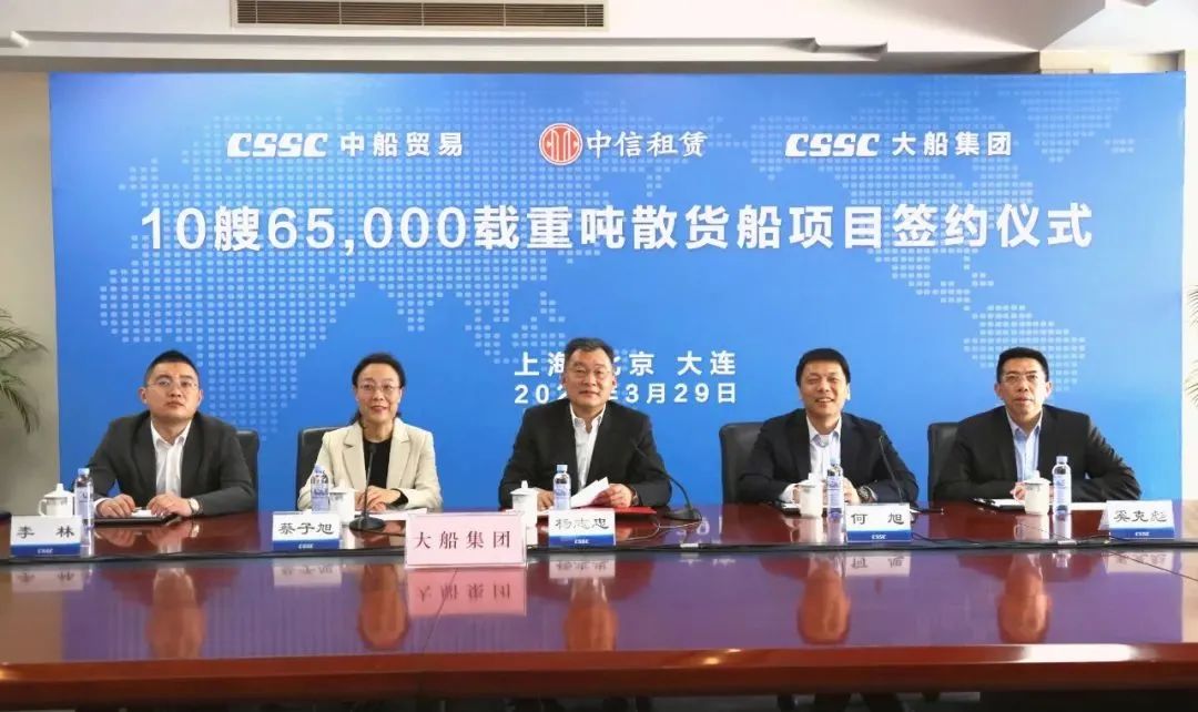 3月29日,中國船舶集團(tuán)旗下中船貿(mào)易聯(lián)合大船集團(tuán)與中信金融租賃有限公司以“云簽約”的形式正式簽署10艘6.5萬噸散貨船新造船合同。該批船舶完工交付后將租賃給國內(nèi)一流航運公司,服務(wù)國家資源能源運輸,主要運營國內(nèi)沿海航線及長江沿線。