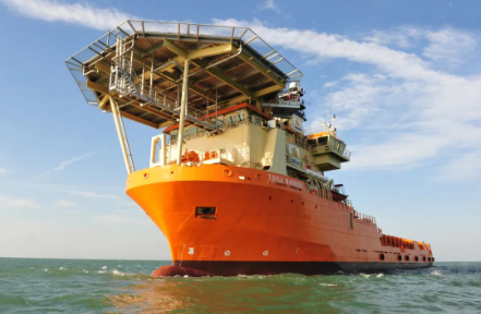 該船型由挪威著名的設(shè)計(jì)公司Salt Ship Design設(shè)計(jì),總長100米,型寬23米,配備4臺(tái)柴油發(fā)電機(jī)組驅(qū)動(dòng)的電力推進(jìn)系統(tǒng),2套艉部全回轉(zhuǎn)推進(jìn)器、1套艏部伸縮推進(jìn)器、2套艏部側(cè)向推進(jìn)器,以及1套1500千瓦時(shí)的儲(chǔ)能蓄電池系統(tǒng)。船上還配備1臺(tái)150噸帶主動(dòng)波浪補(bǔ)償功能的海工吊,可以在復(fù)雜的海況下完成最大3000米水深的海上作業(yè)。
