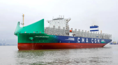 5月23日,由中國船舶集團旗下滬東中華聯(lián)合中船貿(mào)易為法國達飛集團建造的13000TEU液化天然氣(LNG)雙燃料動力集裝箱船系列4號船“CMA CGM SAOPAULO”號,在滬東中華長興島廠區(qū)命名交付。南美洲東海岸航線又將新添一艘中國“智”造的新一代綠色環(huán)保、高效節(jié)能型集裝箱船,為達飛集團箱船船隊綠色轉(zhuǎn)型發(fā)展貢獻新的中國船舶動能。