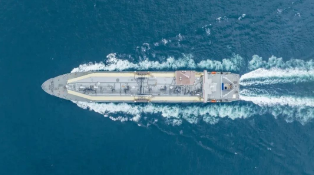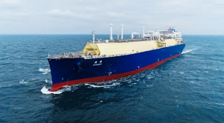 “崆峒”號由滬東中華自主研發(fā)設計,總長295米,航速19.5節(jié),采用全球最新一代雙燃料低速推進動力系統(tǒng),配備先進環(huán)保裝置,可靠泊全球絕大多數(shù)陸地岸站。