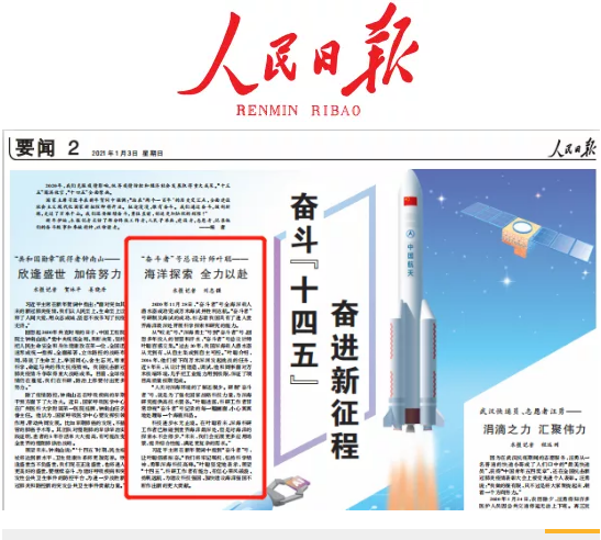 1月3日,人民日報在要聞二版【奮斗“十四五” 奮進(jìn)新征程】專題報道中,以“海洋探索 全力以赴”為題刊發(fā)了對中國船舶集團(tuán)七〇二所副所長“奮斗者”號總設(shè)計師葉聰?shù)膶TL。