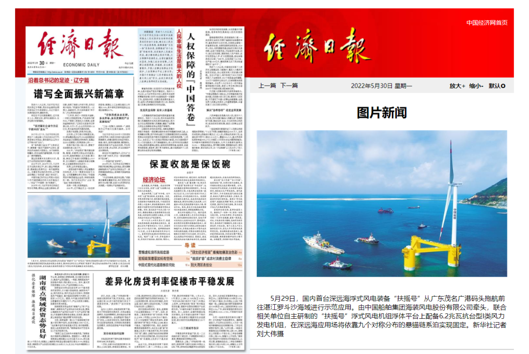 5月29日,中國船舶集團(tuán)旗下中國海裝牽頭研制的國內(nèi)首臺深遠(yuǎn)海浮式風(fēng)電裝備——“扶搖號”從廣東茂名碼頭起航,前往平均水深65米的廣東湛江附近海域投入示范應(yīng)用。