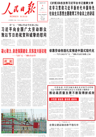 人民日報2023年5月1日頭版刊發(fā)《中管企業(yè)、中管金融企業(yè)扎實開展學習貫徹習近平新時代中國特色社會主義思想主題教育——推動高質量發(fā)展不斷取得新成效(學思想 強黨性 重實踐 建新功)》。文中提到: