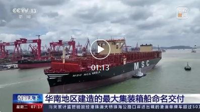 7月24日,由中國船舶集團(tuán)旗下廣船國際聯(lián)合中船貿(mào)易建造的16000TEU集裝箱船1號(hào)船命名交付,中央電視臺(tái)《朝聞天下》進(jìn)行了報(bào)道。