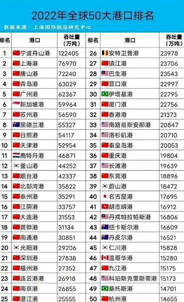 從規(guī)模上講,在世界排名前十的港口當中,中國占有八席。