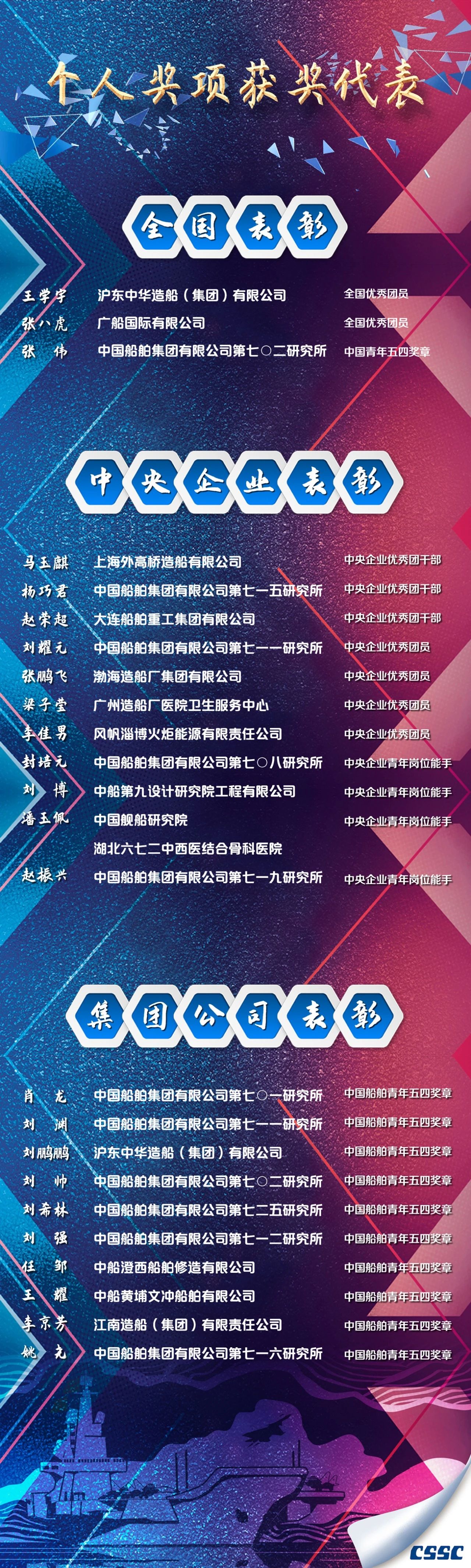 有的在生產(chǎn)一線不畏艱難、埋頭苦干,有的在服務(wù)集團(tuán)發(fā)展的最基層不計(jì)得失、任勞任怨。他們把個人理想融入世界一流船舶集團(tuán)的偉大事業(yè)中,書寫著新時代的青春答卷,彰顯著新時代青年的責(zé)任與擔(dān)當(dāng),為船舶青年作出了榜樣,樹立了標(biāo)桿。