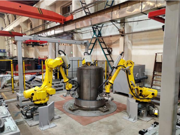 近日,中國船舶集團(tuán)旗下杰瑞自動化承研的定子鐵芯疊裝機(jī)器人工作站項目通過驗(yàn)收并投入使用,實(shí)現(xiàn)了大型高壓異步電機(jī)關(guān)鍵配套——定子鐵芯的自動化生產(chǎn)。