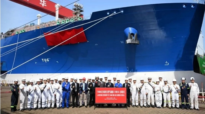 17.4萬立方米LNG運輸船“遠海奮進”號(Ocean Inspiration)在滬東中華新廠區(qū)正式命名。
