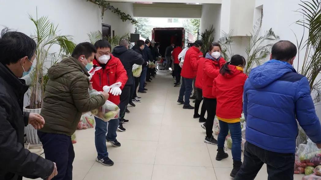 元旦前,東儀科工100余位黨員、職工火速集結(jié)組成志愿團隊,有序?qū)?6輛汽車運來的物資進行卸載、分裝,忙而不亂,將一袋袋蔬菜分樓棟、分單元送到居家隔離的住戶手中,確保3200余戶居民在新的一年到來之前收到政府的愛心物資,滿足基本生活需求。