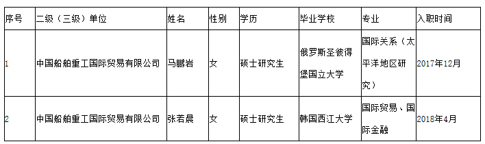 中國船舶重工集團有限公司擬接收留學(xué)回國人員信息的公示